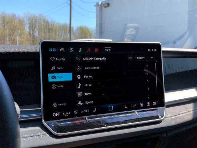 - MIB4 Composition Media Touchscreen w/AM/FM Radio -inc: WMA/MP3/FLAC player w/USB, 12.9" touchscreen multi-function center display w/backlit sliders, voice control, 6 speakers + center speaker (7 speakers total) sound system, capability for in-vehicle 4G LTE enabled Wi-Fi (cellular data plan required; includes limited trial), capability for connected vehicle services (capabilities for services vary; requires enrollment or subscription), Bluetooth® connectivity (for compatible devices), SiriusXM w/360L (w/3-month free trial subscription; 360L services require acceptance of Car-Net terms), App-Connect smartphone integration (w/Apple CarPlay, Android Auto and MirrorLink) via USB, wireless App-Connect smartphone integration (for compatible devices) w/multi-phone pairing capability, 45W fast charging (for compatible mobile phones and accessories) via USB in both rows and Qi wireless inductive charger, cooled, up to 15W (for compatible mobile phones and accessories) All connected vehicle services are subject to terms and limitations. Some services require a paid subscription. See dealer or vw.com/connected for important details.